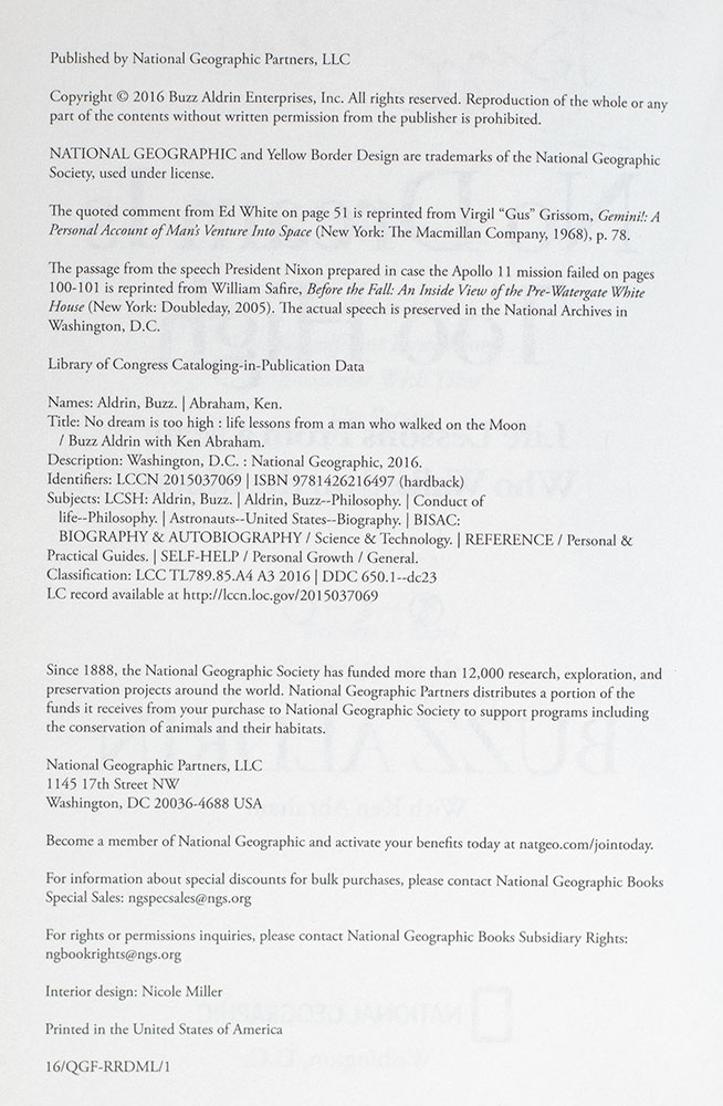 First Edition of Buzz Aldrin's No Dream Is Too High: Life Lessons From a Man Who Walked on the Moon; Signed by Him