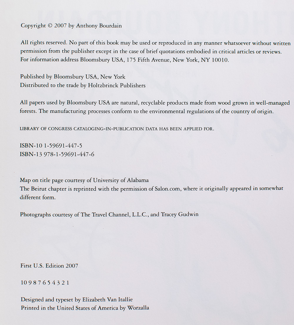 First edition of this work by the award-winning chef. Octavo, original boards, illustrated throughout. Presentation copy, boldly inscribed by the author on the title page, "To Luke and Tina Anthony Bourdain." Fine in a fine dust jacket. Jacket design by Amy C. King.