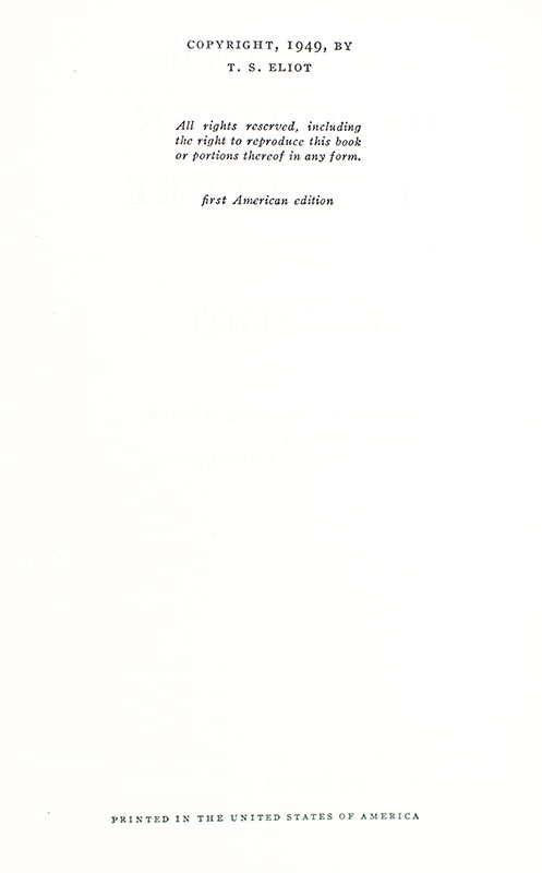 First American edition of Eliot's exposition on the political, educational, and journalistic contexts of culture. Octavo, original cloth. Near fine in a near fine dust jacket.