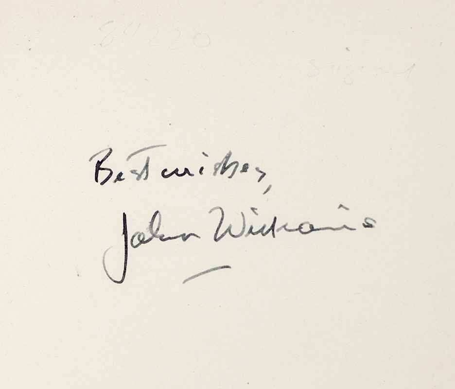 First edition of John Williams' first book. Octavo, original cloth. Signed by the author on the front free endpaper in a contemporary hand, "Best wishes John Williams." Fine in a near fine dust jacket with a touch of shelfwear. Jacket and book design by John Williams. Rare and desirable signed.