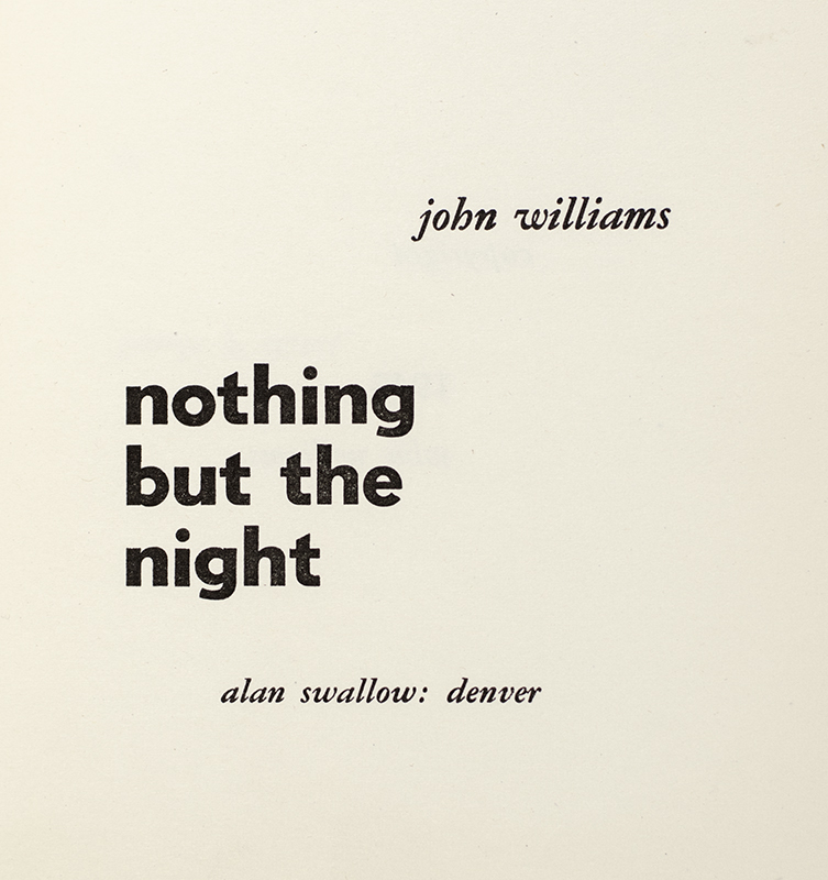 "But the particular circumstance of dreaming is that the dreamer is bereft of power": Rare first edition of John Williams' first novel Nothing But the Night; Signed by Him