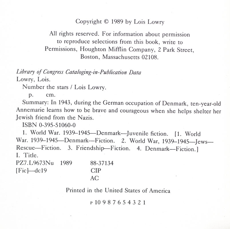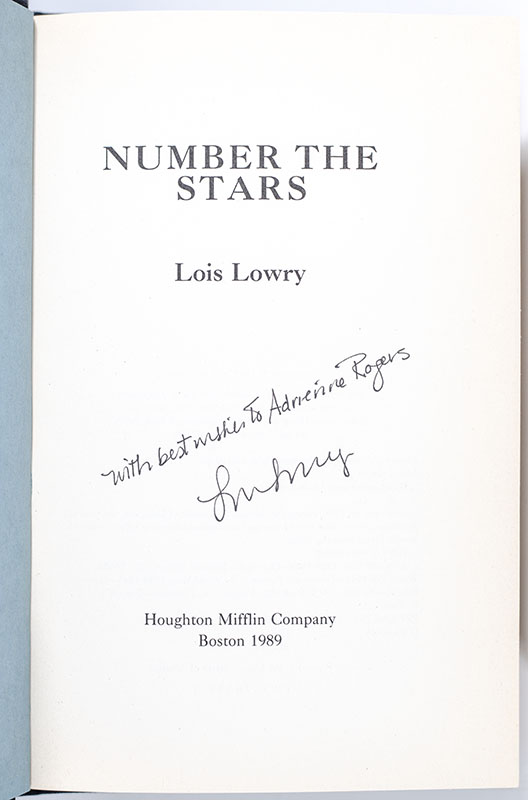 "How Brave are you, little Annemarie?": Lois Lowry's First Edition of Number the Stars; Inscribed by Her