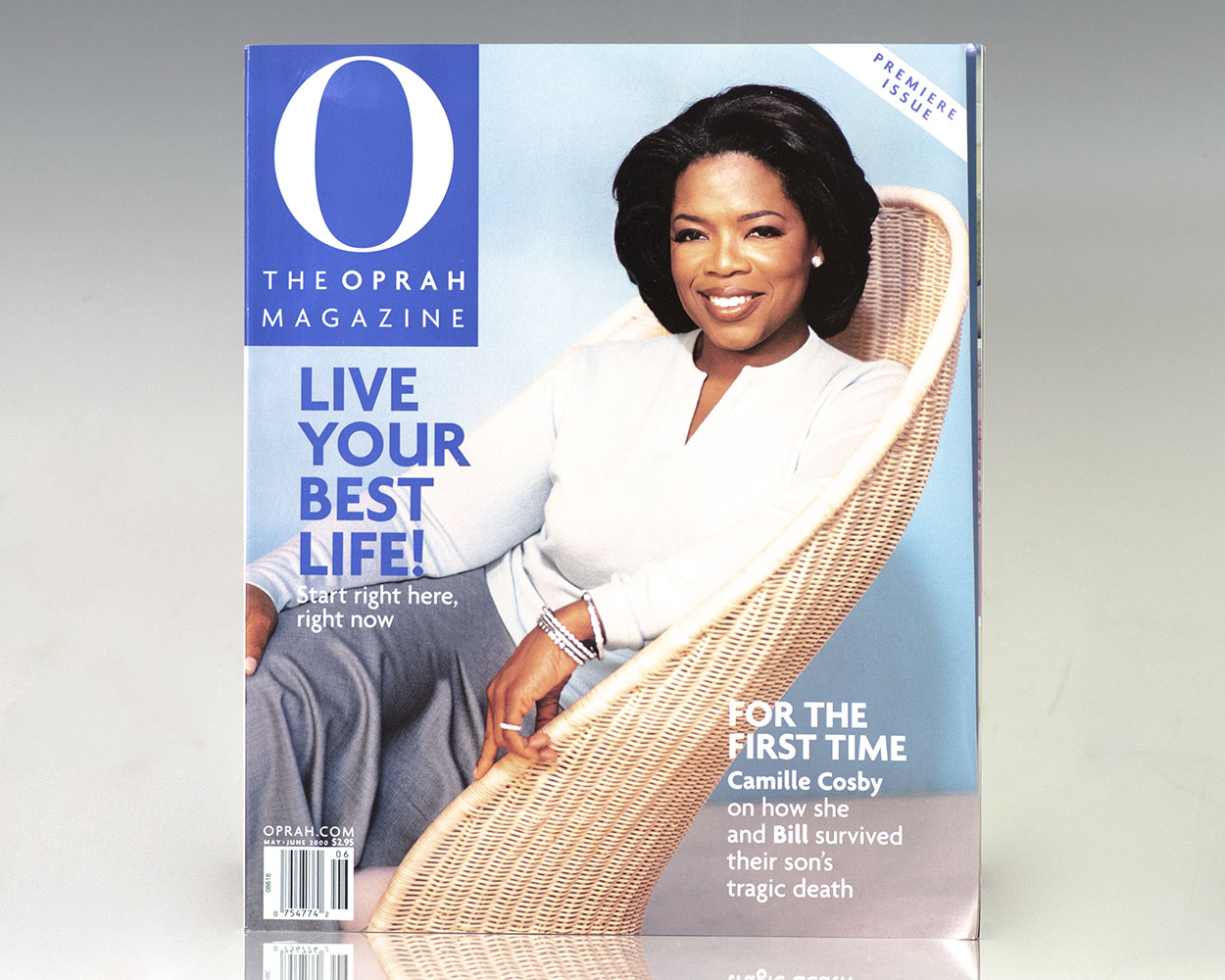First edition, premiere issue of the first issue of Oprah Magazine. Quarto, original pictorial wrappers, illustrated. From the collection of Bill Zwecker. A member of the Broadcast Film Critics Association, Zwecker was a longtime entertainment and celebrity journalist. A Chicago native and second-generation newspaper star (his late mother, Peg Zwecker, was the fashion editor of the Sun-Times and Chicago Daily News), Zwecker began his journalism career in the 1980s and has since interviewed some of the most renowned celebrities across a breadth of industries. He has been a frequent contributor to numerous national news and entertainment programs including Access Hollywood, Entertainment Tonight, Showbiz Tonight, Extra, and the Today Show. In fine condition. Housed in the original publisher's custom clamshell box.