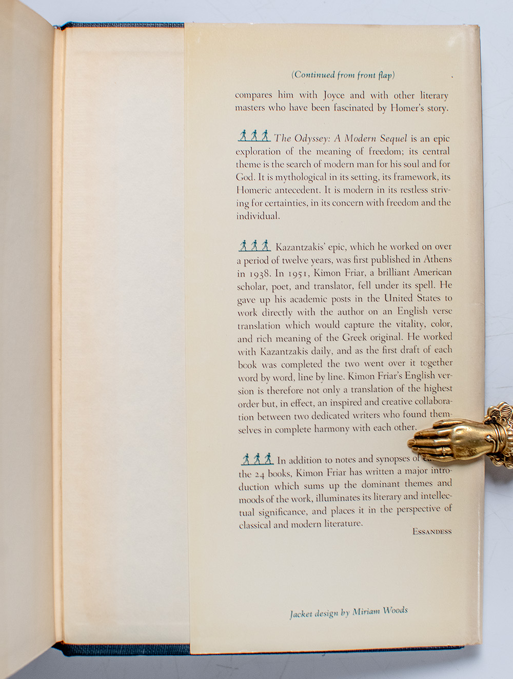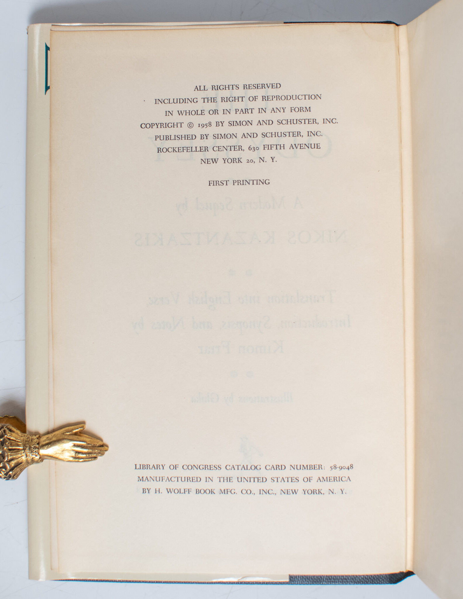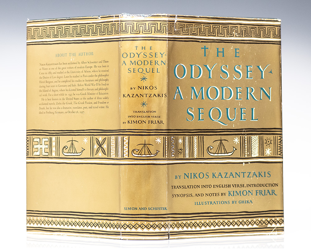 First edition, first printing of Kazantzakis' masterpiece. Octavo, original cloth. Translated into English by Kimon Friar; illustrations by Ghika. Near fine in a very good dust jacket, inscription to the front free endpaper. Uncommon.