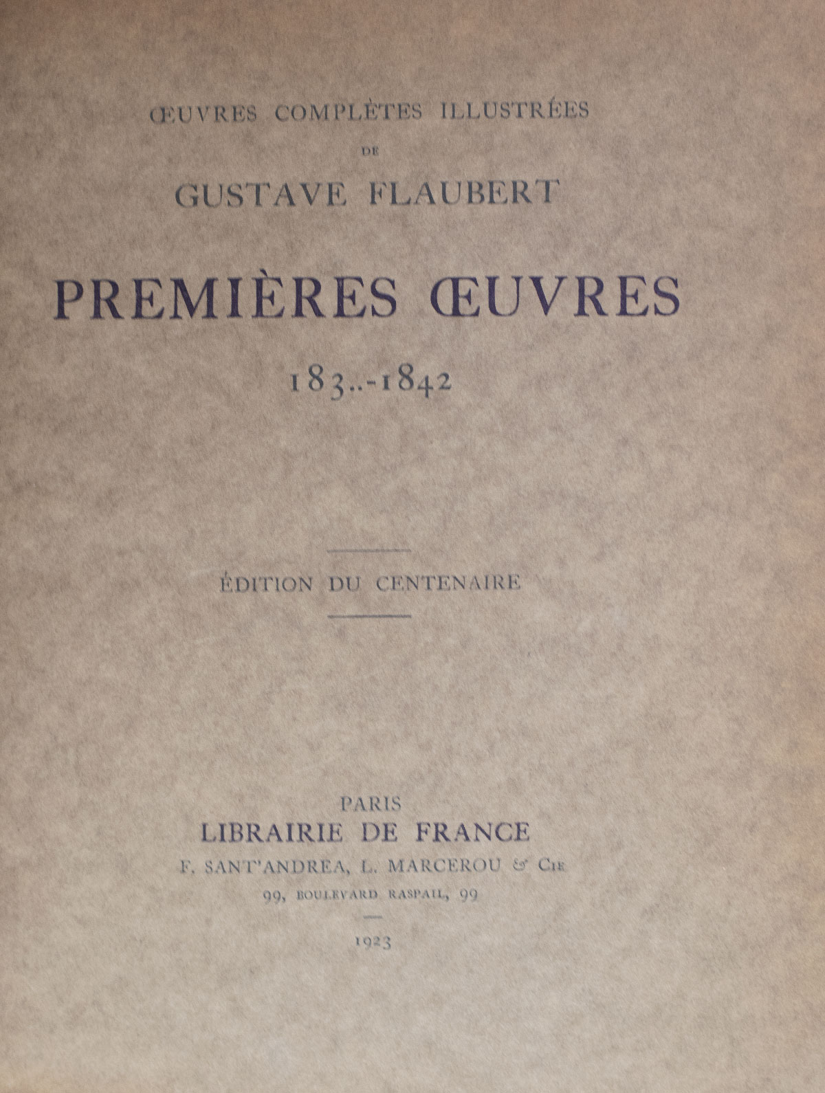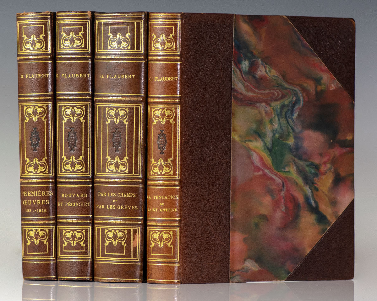 The Edition du Centenaire of the complete illustrated works of Gustave Flaubert. Quarto, bound in three quarters morocco over marbled boards, gilt titles and tooling to the spine in five compartments within raised gilt bands, marbled endpapers, top edge gilt, original wrappers bound in, illustrated by Andre Favory, Georges Dufrenoy, Bernard Naudin, and Pierre Girieud. In near fine condition.