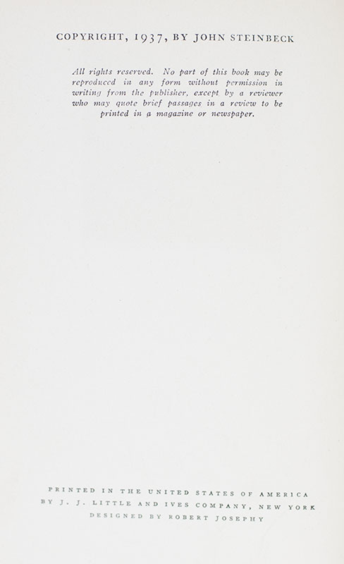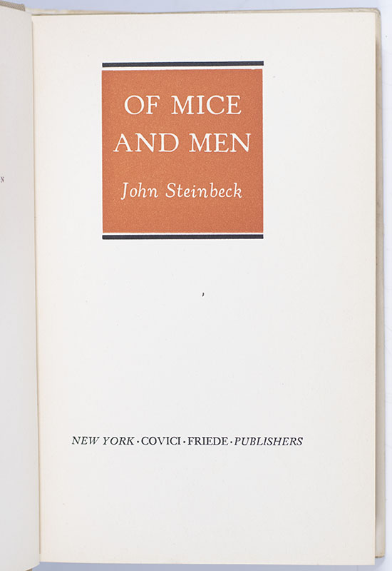 “I got you to look after me, and you got me to look after you, and that's why": First Edition of John Steinbeck's Of Mice and Men