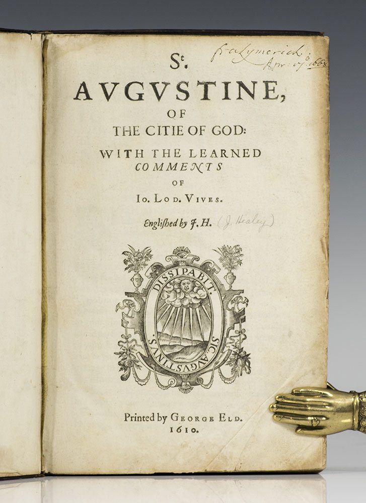 "REDESIGNING THE SHAPE OF HISTORY AUGUSTINE WOULD DOMINATE WESTERN THOUGHT FOR THE NEXT MILLENNIUM": RARE FIRST EDITION IN ENGLISH OF AUGUSTINES CITIE OF GOD
