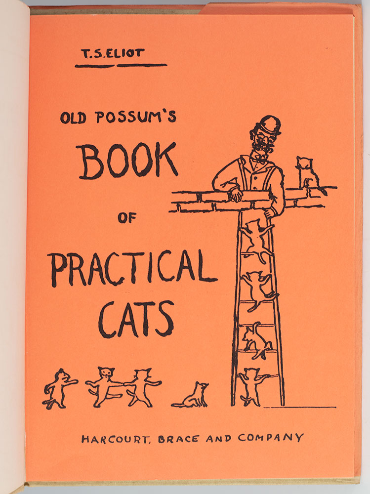 "Jellicle Cats come out tonight, Jellicle cats come one come all: the jellicle moon is shining bright- jellicles come to the jellicle ball": First edition of T.S. Eliot's Old Possum's Book of Practical Cats