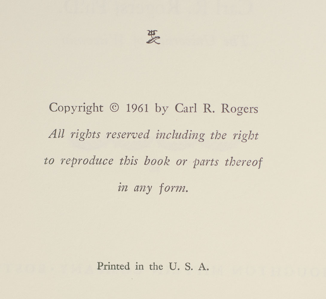 First Edition of Carl Rogers' landmark work On Becoming a Person; Signed by Him