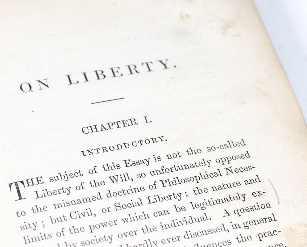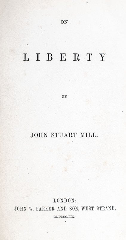 "The only freedom which deserves the name, is that of pursuing our own good in our own way, so long as we do not attempt to deprive others of theirs, or impede their efforts to obtain it": Rare First Edition of John Stuart Mills On Liberty