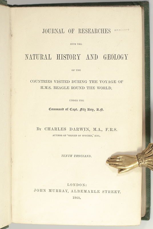 Early edition of Darwin's journals and remarks regarding his 5-year second survey expedition aboard the HMS Beagle. Octavo, original cloth, gilt titles to the spine. In near fine condition.