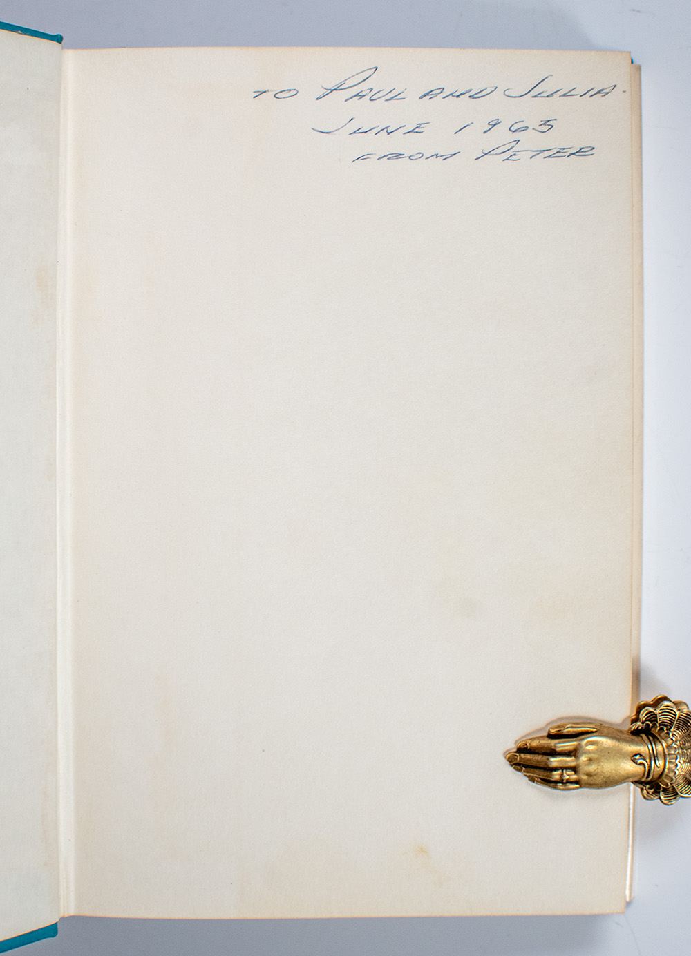 First edition of this work, basis for the Academy Award-winning film Glory, starring Matthew Broderick, Denzel Washington, Morgan Freeman and Cary Elwes. Octavo, original cloth. Association copy, inscribed by the author in the year of publication on the front free endpaper, "To Paul and Julia [Child] June 1965 From Peter." The recipient, Julia Child was a chef, author, and television personality. She is recognized for having brought French cuisine to the American public with her debut cookbook, Mastering the Art of French Cooking, and her subsequent television programs, the most notable of which was The French Chef, which premiered in 1963.Near fine in a near fine dust jacket. An exceptional association.