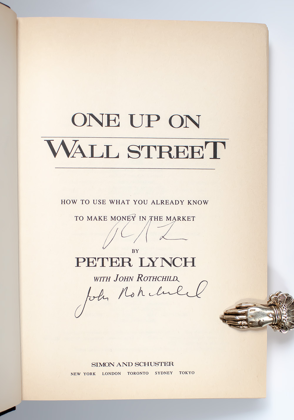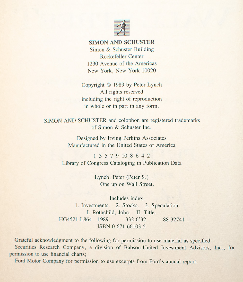 First edition of this classic volume on investing; one of the all-time best-selling books in the field. Octavo, original half cloth. Boldly signed by Peter Lynch and co-author John Rothchild on the title page. Fine in a fine dust jacket. Written with John Rothchild. Jacket design by Barry Littman. Jacket photograph by Larry Maglott.