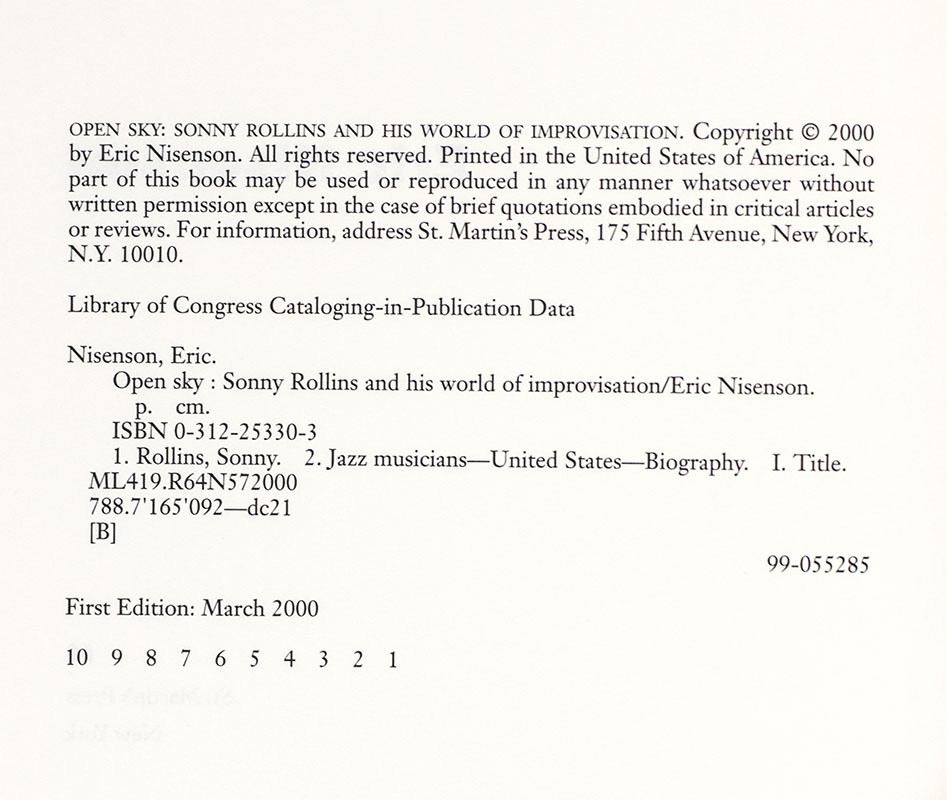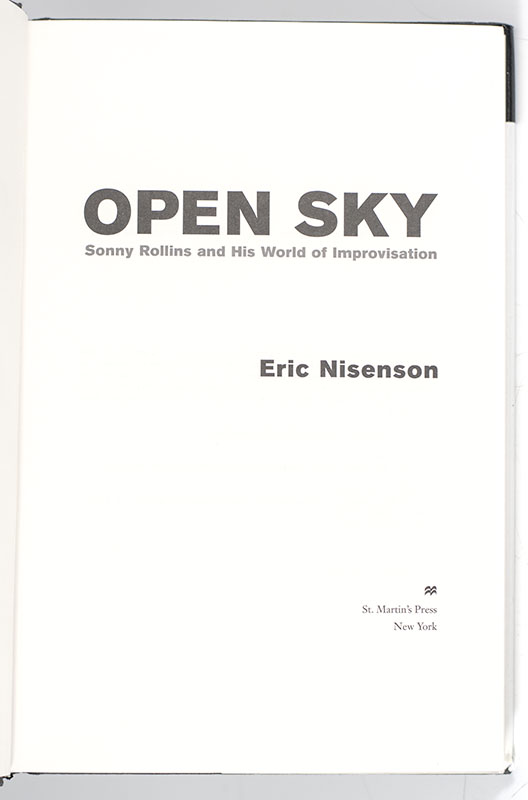 "It's all about creation and surprise": First Edition of Open Sky; Signed by Sonny Rollins