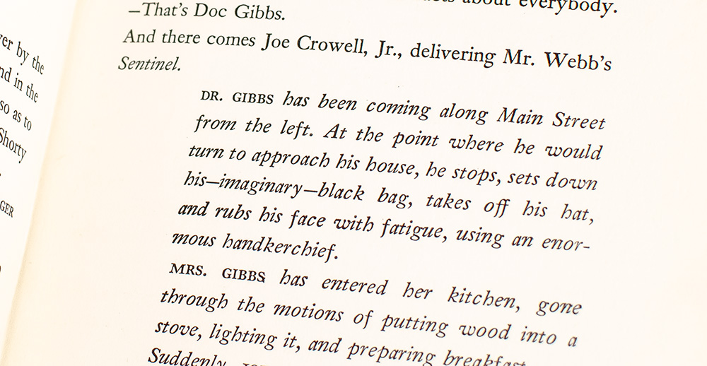 “Do any human beings ever realize life while they live it?”: First Edition of Pulitzer Prize-Winning Drama Our Town; Finely Bound by the Harcourt Bindery and Signed by Thornton Wilder