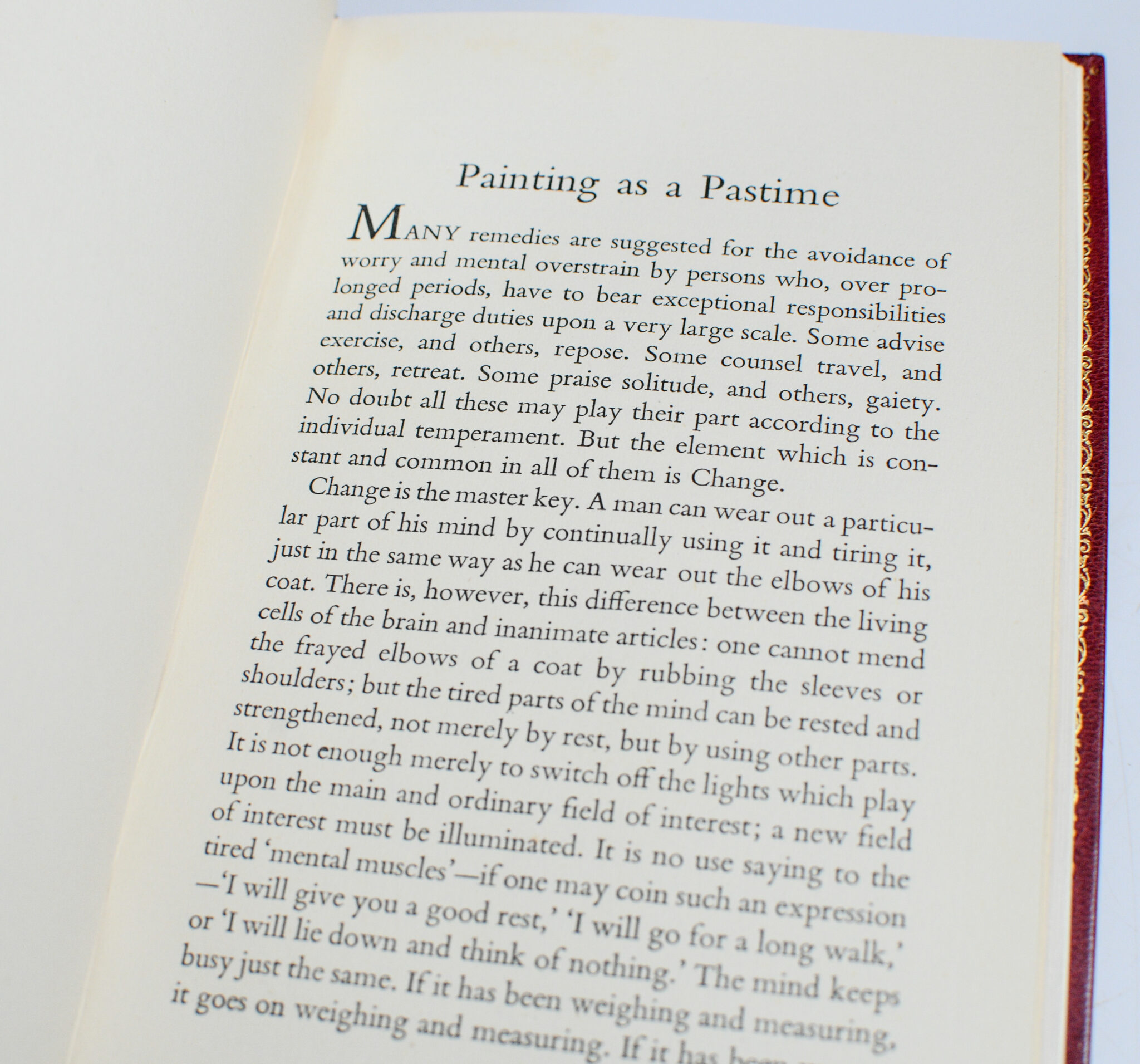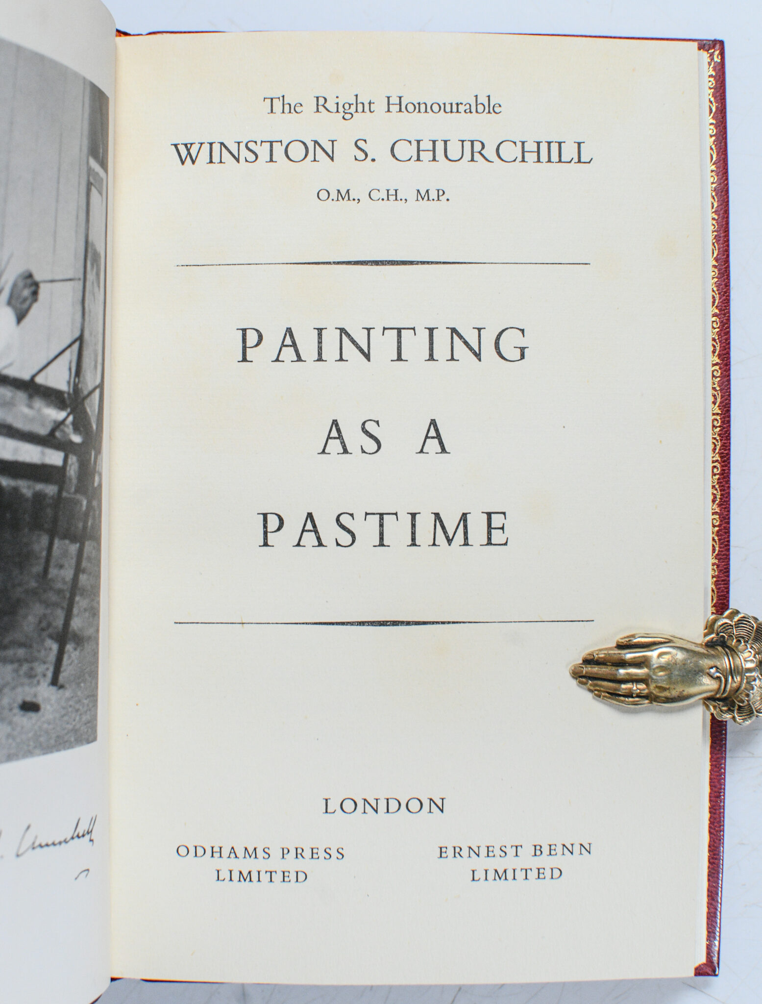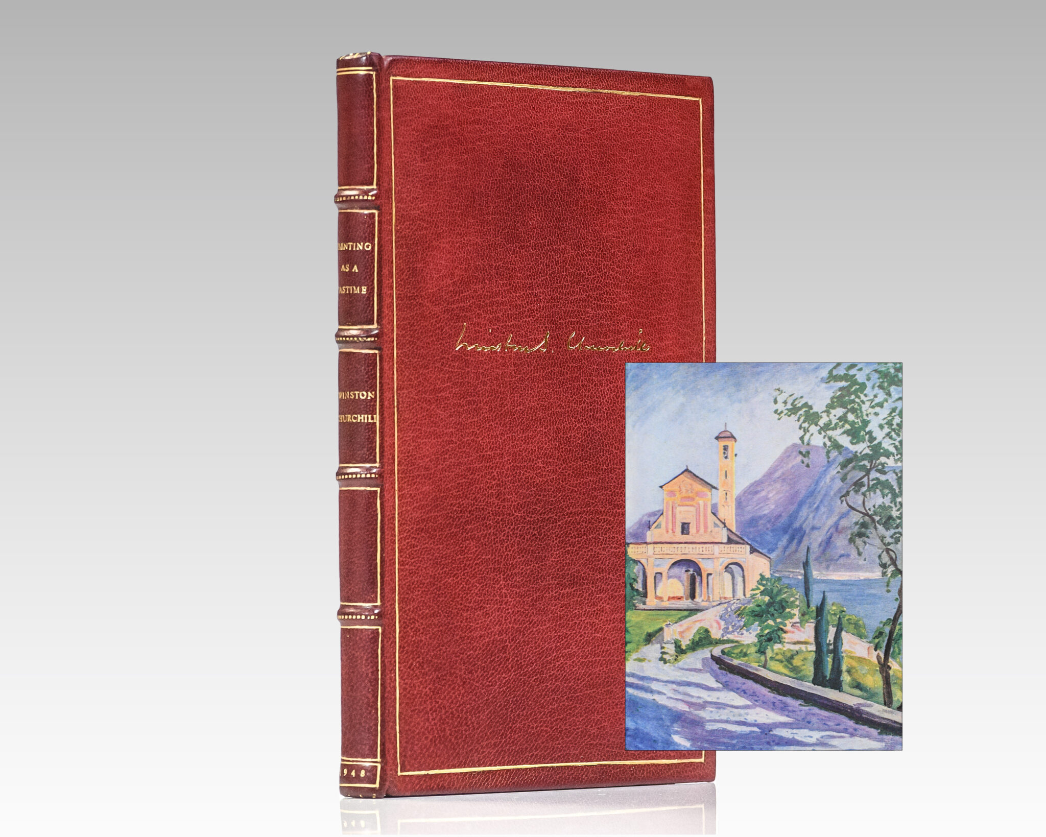 "There is no better exercise for the would-be artist than to study and devour a picture, and then, without looking at it again, to attempt the next day to reproduce it": First Edition of Winston S. Churchill's Painting As A Pastime; Finely Bound by The Harcourt Bindery