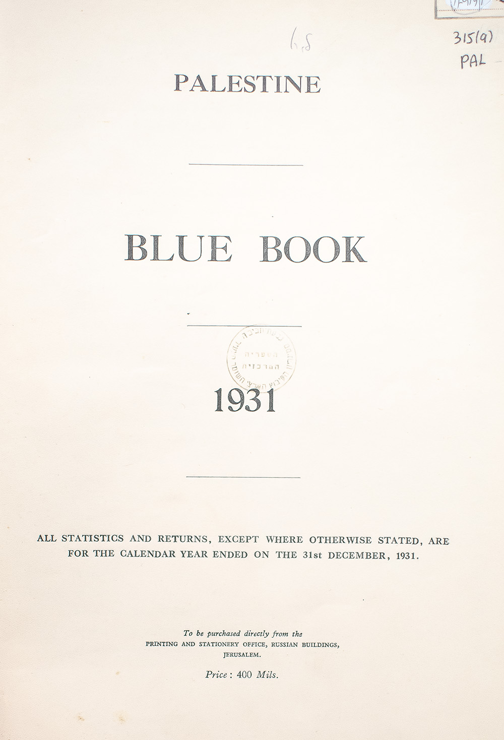 Palestine: Blue Book 1931.