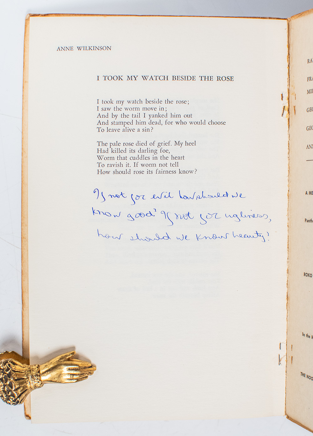 First edition of this anthology of Canadian poetry. Octavo, original pictorial wrappers, four issues of poetry, number two. Boldly signed and dated by Leonard Cohen on the title page, "Leonard Cohen 2002." This is an early appearance of Cohen in an anthology at the age of 24, and features Cohen's poems, "The Cuckold's Song" and "Master and Slave." Additionally signed by the editor Irving Layton beneath his name on the title page with his annotations in the text. Irving Layton was an early and lifelong friend and mentor to Cohen. Also in this issue are poems by Louis Dudek, Leonard Cohen’s teacher and supporter from his University of McGill undergraduate days. In very good condition.
