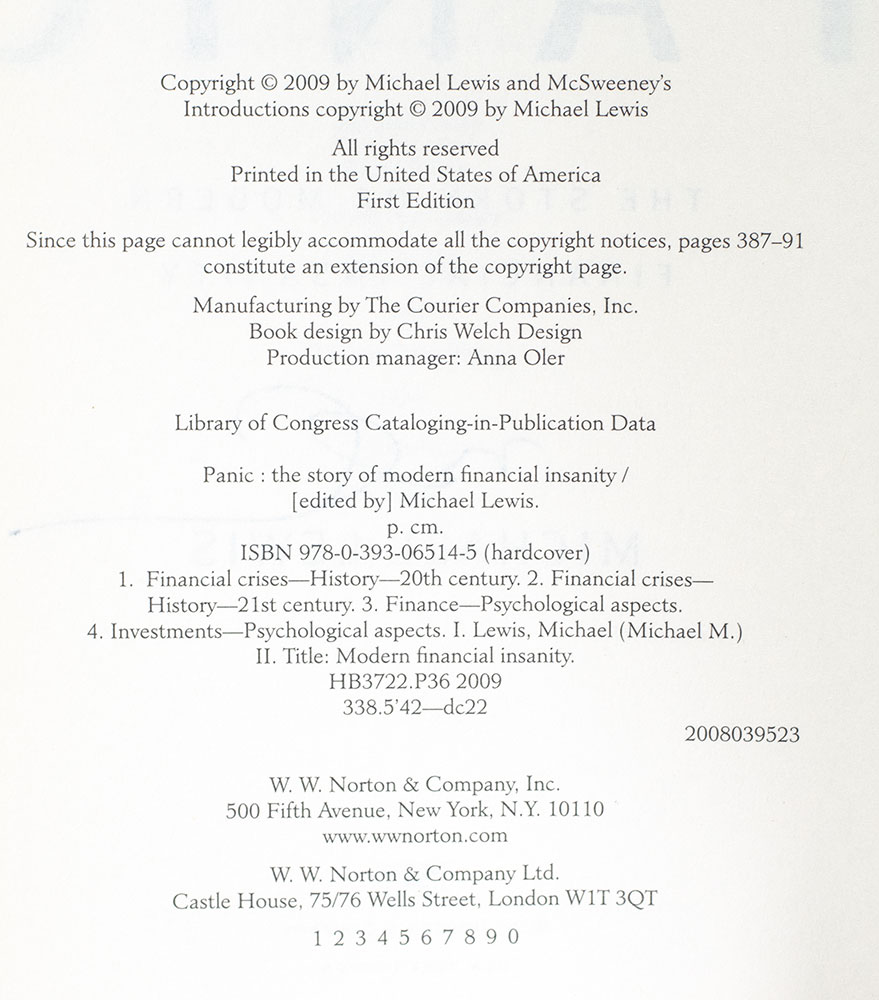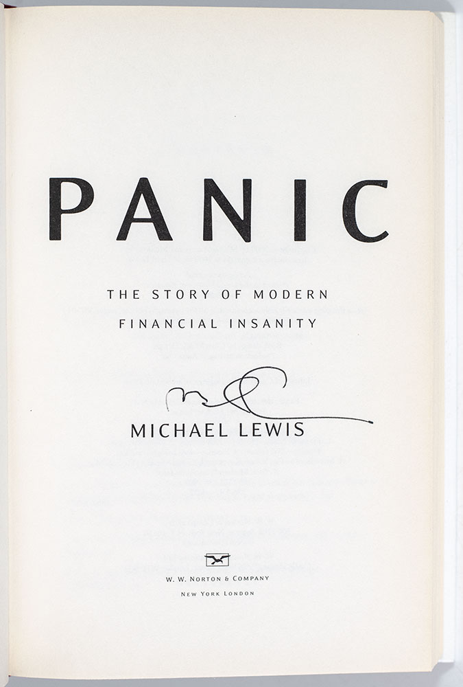First Edition of Michael Lewis' Panic: The Story of Modern Financial Insanity; Signed by Him