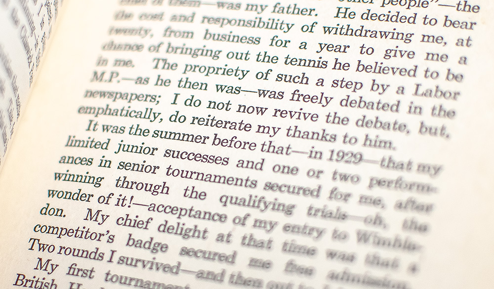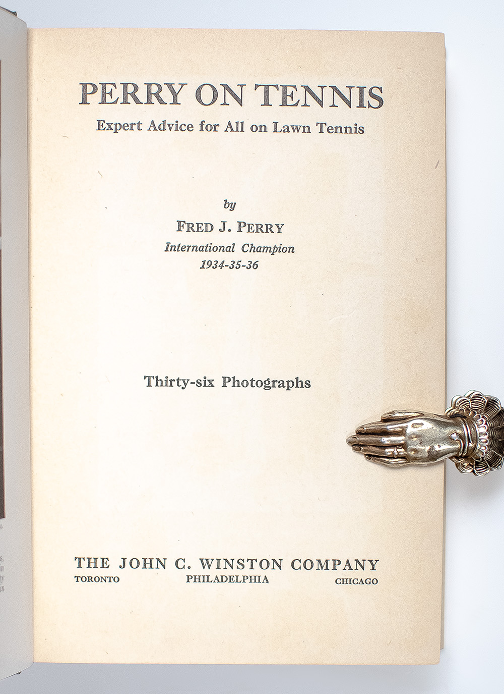 First edition. Octavo, original cloth, illustrated. Boldly signed by Fred Perry on the front free endpaper in pencil. Near fine in a very good dust jacket, ownership stamp of Sidney Wood to the front pastedown. Wood was tennis player who won the 1931 Wimbledon singles title. Wood was ranked in the world's Top 10 five times between 1931 and 1938, and was ranked World No. 6 in 1931 and 1934 and No. 5 in 1938 by A. Wallis Myers of The Daily Telegraph. Rare and desirable signed and with noted provenance.