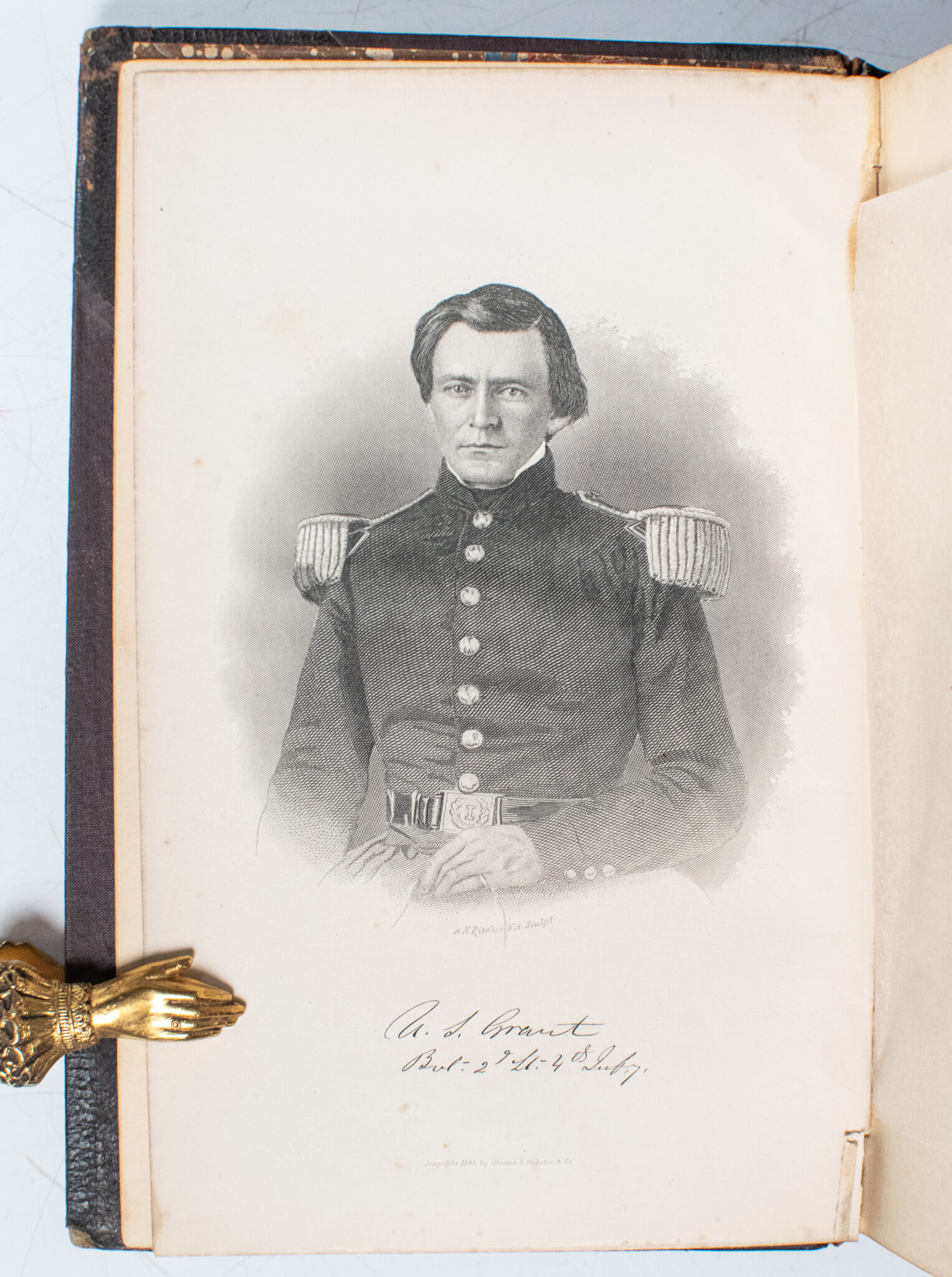 First edition in the publisher's deluxe brown half morocco of the autobiography of Ulysses S. Grant, the 18th President of the United States, which focuses mainly on his military career during the Mexican War and the Civil War. Octavo, 2 volumes, bound in the original publisher's deluxe brown half morocco over brown boards, with blind-stamped gilt central motifs of Grant, gilt titles and tooling to the spine in six compartments within raised bands, all edges marbled, marbled endpapers. Illustrated with numerous steel engravings, facsimiles and 43 maps including tissue-guarded frontispiece portrait of Grant to each volume. In very good condition, inscription to volume two.