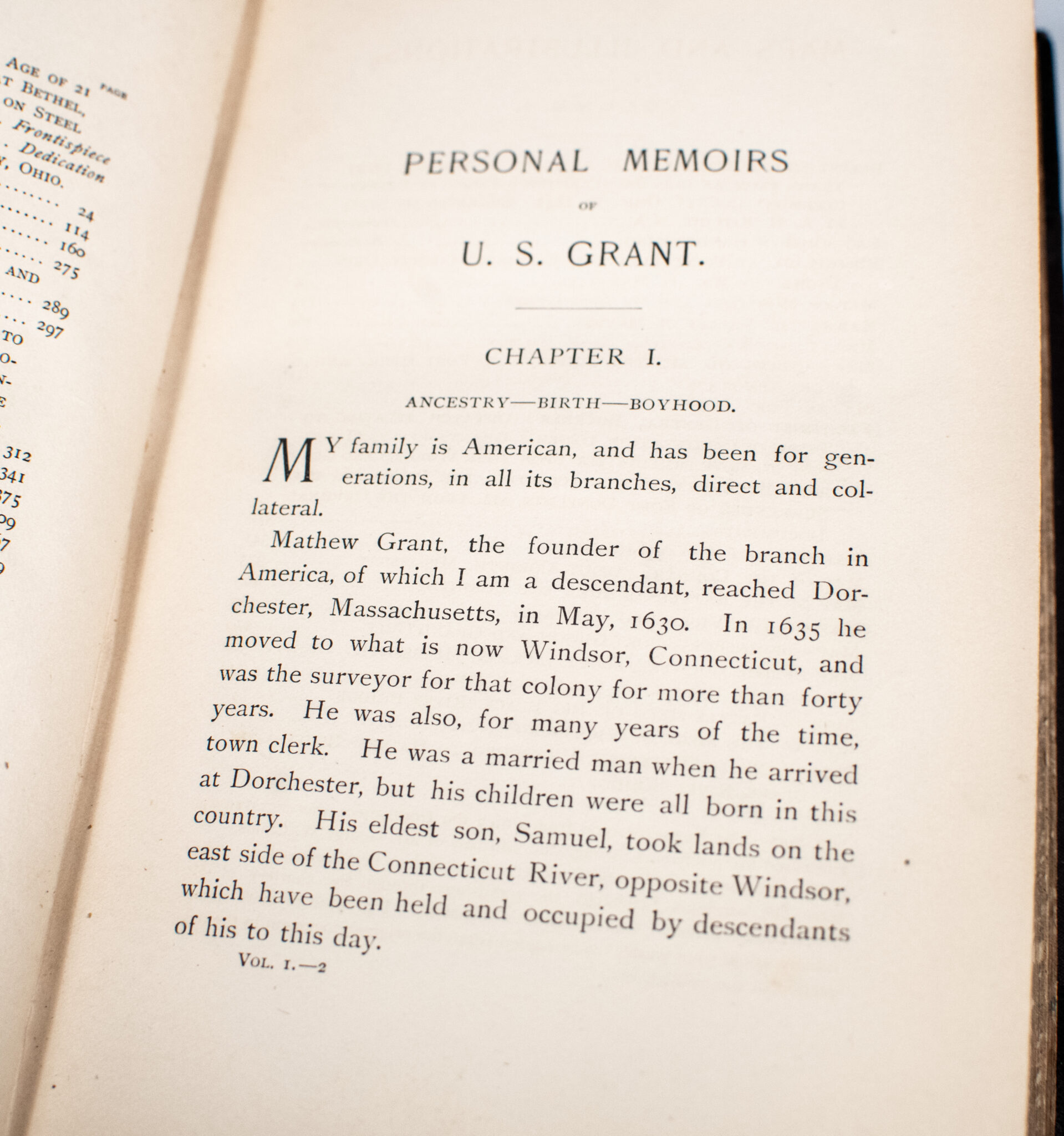 "There are but few important events in the affairs of men brought about by their own choice": First Edition in the Publisher's Deluxe Half Morocco of Grants Memoirs
