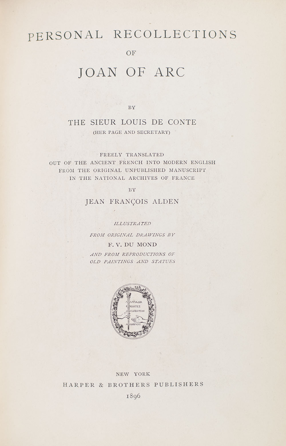 Presented as a translation by Jean Francois Alden of Joan of Arc's page and secretary the Sieur Louis de Conte's memoirs, Twain's Personal Recollections of Joan of Arc first appeared as a serial in Harper's Magazine beginning in April of 1895. Twain, aware of his reputation as a humorist, asked that each installment appear anonymously as he desired that readers treat the piece seriously. Regardless, his authorship soon became known, and the present volume was published by Harper and Brothers in May 1896 crediting Twain as the author.