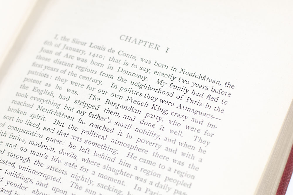 "Since the writing of human history began, Joan of Arc is the only person, of either sex, who has ever held supreme command of the military forces of a nation at the age of seventeen": First edition, first state of Mark Twain's Personal Recollections of Joan of Arc