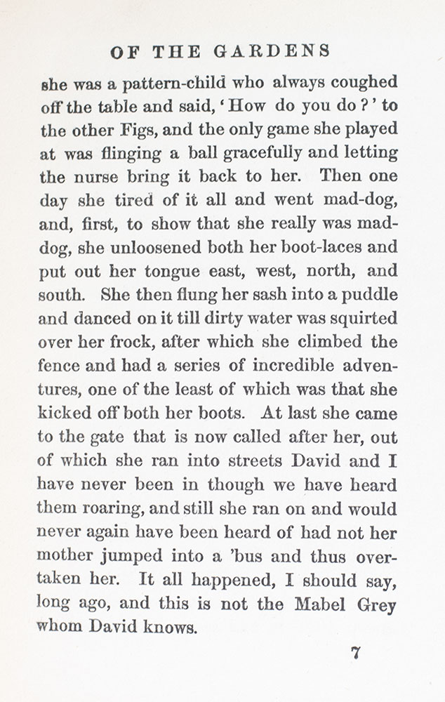 Barrie's beloved character, Peter Pan's namesake "came from Peter Llewelyn Davies, who when still a baby became the subject of stories told by Barrie to [Peter's older brothers]. According to these stories Peter, like all babies, had once been a bird and could still fly out of his nursery window and back to Kensington Gardens, because his mother had forgotten to weigh him at birth. From these stories came the 'Peter Pan' chapters in The Little White Bird [published 1902], afterwards re-issued with Arthur Rackham illustrations as Peter Pan in Kensington Gardens" (Carpenter, 177). "The 50 color plates were unanimously praised by all who saw them. One critic wrote: 'Mr. Rackham seems to have dropped out of some cloud in Mr. Barrie's fairyland, sent by special providence to make pictures in tune with his whimsical genius" (Dalby, 76-77). The book established Rackham's reputation and remains "his acknowledged masterpiece" (Ray, 204).