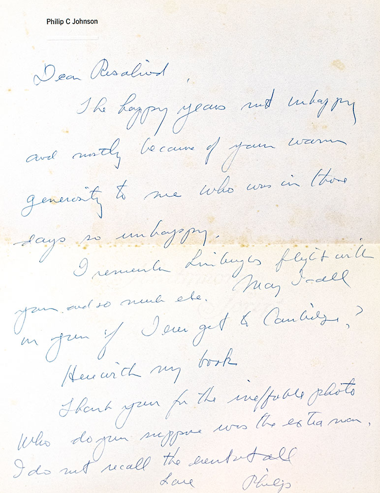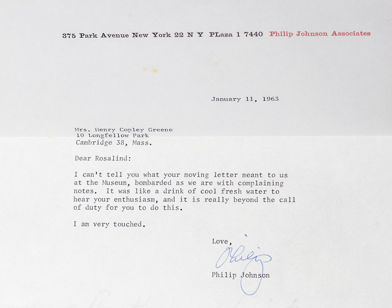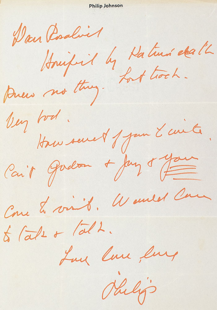 First Edition of Philip Johnson: Makers of Contemporary Architecture; Warmly inscribed by him and with two autographed letters signed and three typed letters signed