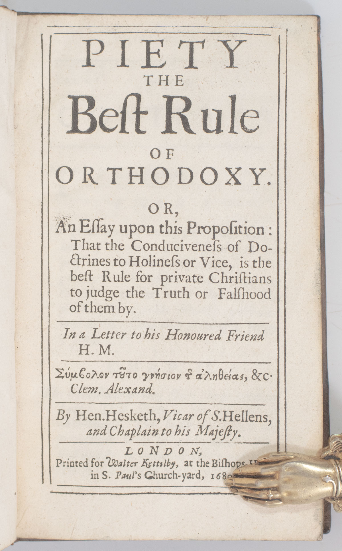 Rare first edition of Henry Hesketh's Piety the Best Rule of Orthodoxy
