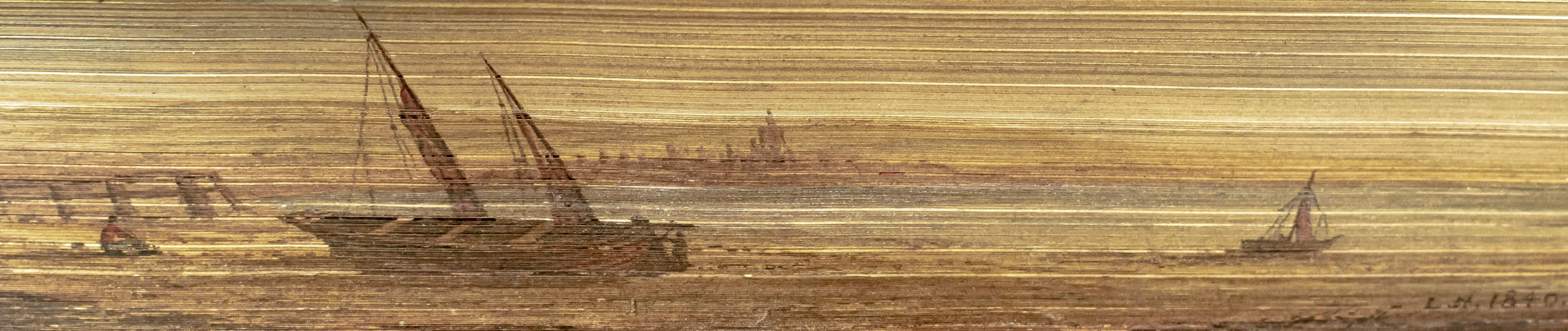 Finely bound example with a foredge painting of a sailing ship initialed and dated 1840 of one of the most significant works of religious English literature, Pilgrim's Progress. Octavo, bound in full morocco, all edges gilt, 15 plates and illustrations, all hand-colored, with a fore-edge painting of a sailing ship initialed and dated 1840, engraved frontispiece. In very good condition. An nice presentation.