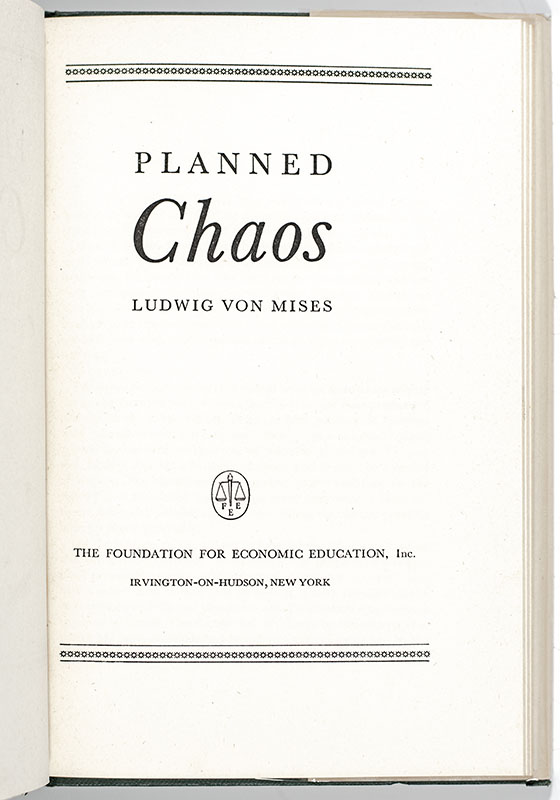 First Edition of Ludwig Mises' Planned Chaos; Signed by Him