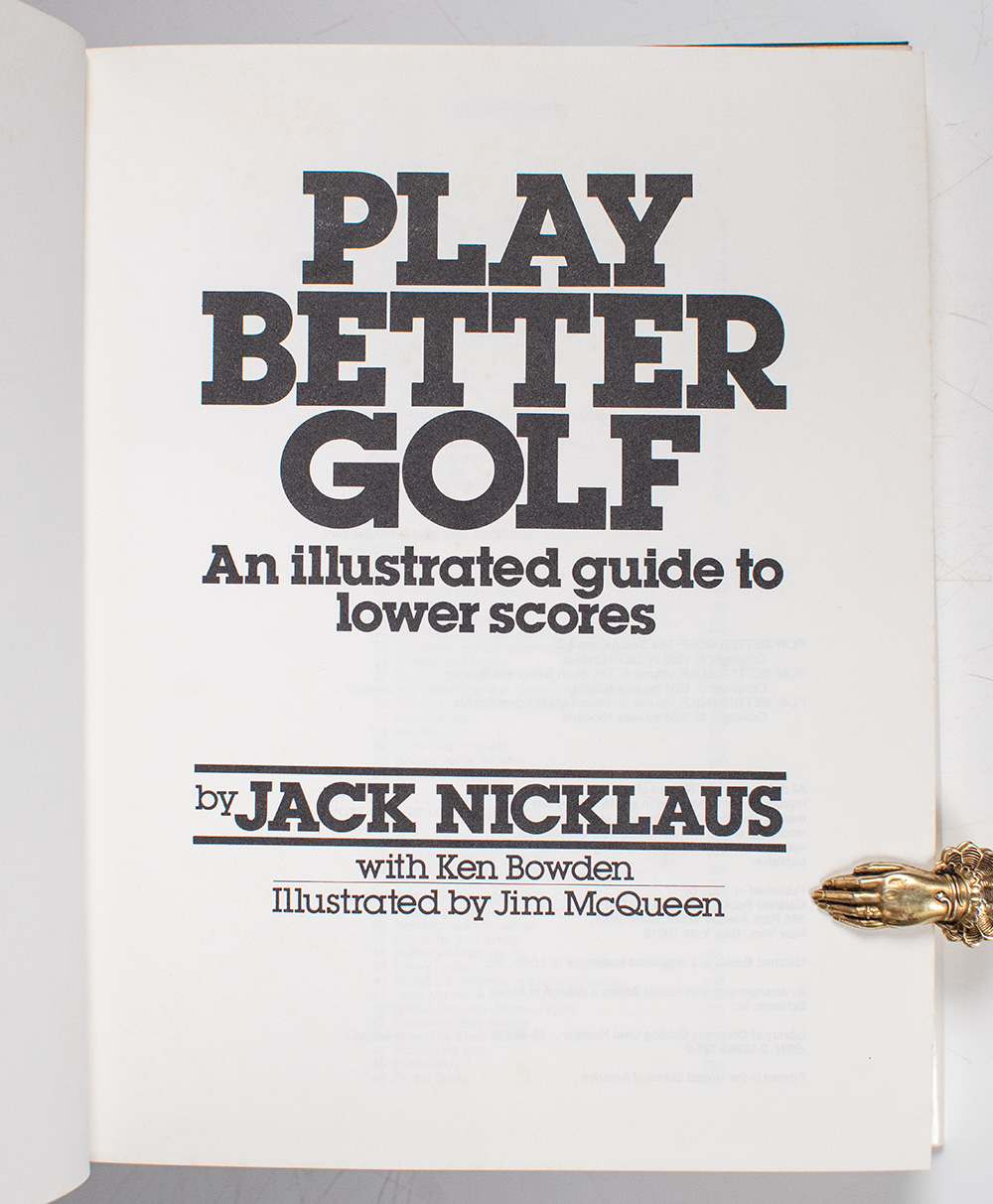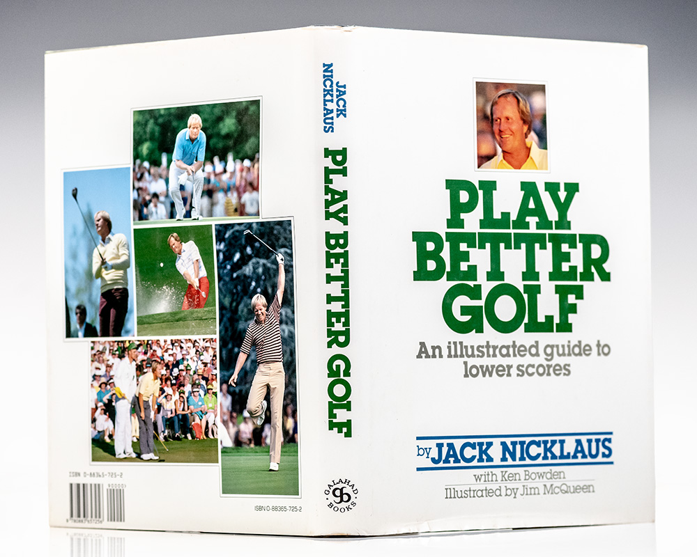 Early edition of this instructional guide to golf. Quarto, original green boards, illustrated. Boldly signed by the author on the half-title page, "Best Regards Jack Nicklaus." Written with Ken Bowden. Illustrated by Jim McQueen. Near fine in a near fine dust jacket. Jacket design by Max Menikoff. Uncommon signed.