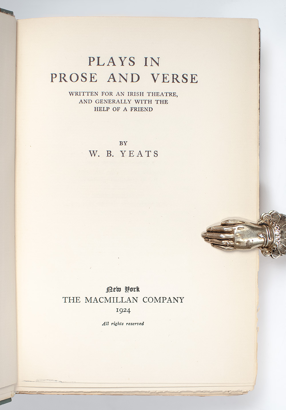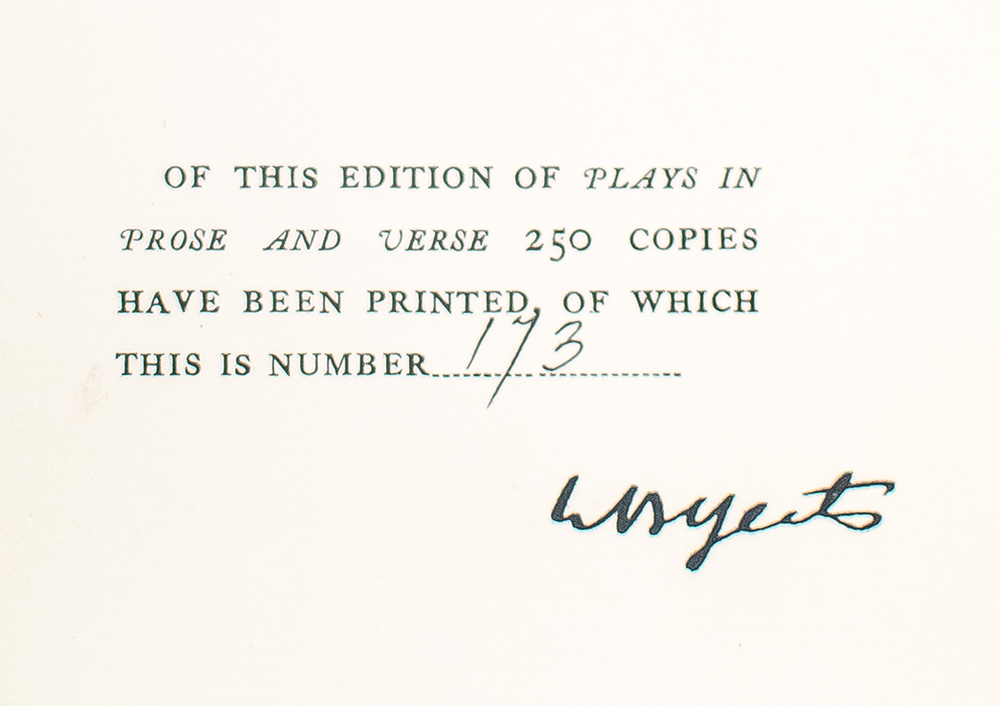 First Edition of Plays in Prose and Verse; Signed by William Butler Yeats