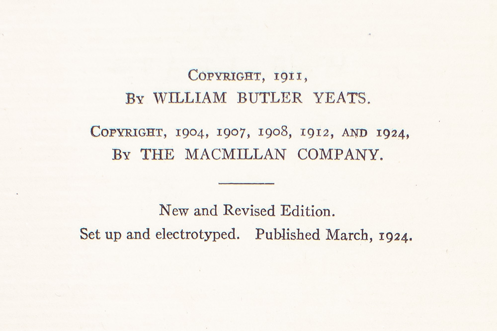 Signed limited edition of this collaborative collection of prose and verse plays. Octavo, original half cloth with paper labels to the spine and front panel. One of two hundred and fifty copies signed by William Butler Yeats limitation page, this is number 173. In very good condition.