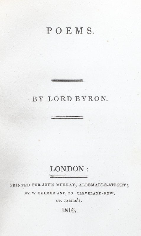 "The dew of the morning sunk chill on my brow - it felt like the warning of what I feel now": First edition of Byron's poems
