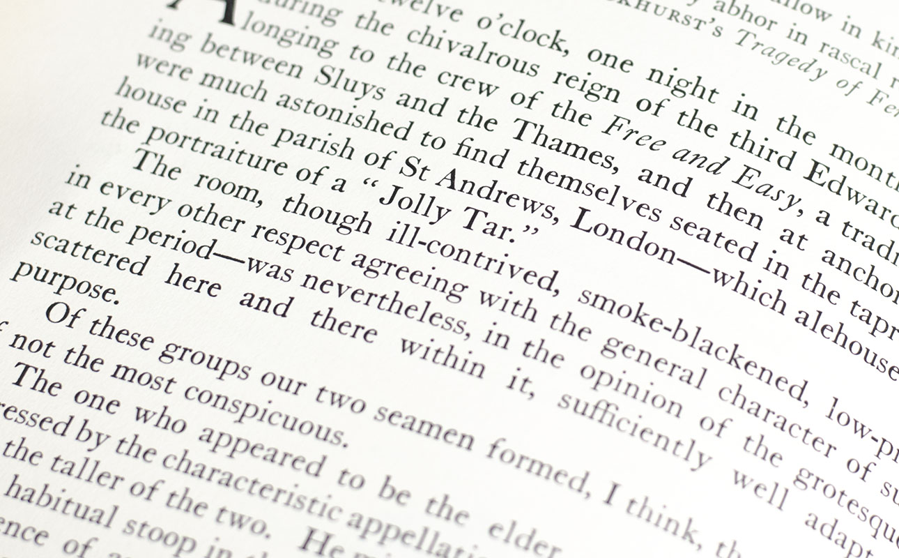 The title "Tales of Mystery and Imagination" was first used by The World's Classics and printed by Grant Richard in 1902. The title of this collection was then adopted by Padraic Colum in 1908 in view of the growing reputation of Poe's taste for suspense, especially in the context of what his French critic M. Brunetiere called events "on the margin" of life. The original collection, in keeping with its title, deliberately excluded Poe's poems, comedies and essays. There are twenty-five tales including The Pit and the Pendulum, The Murders in the Rue Morgue, The Fall of the House of Usher and The Descent into the Maelstrom.