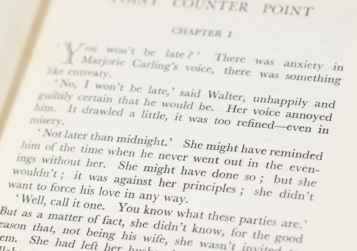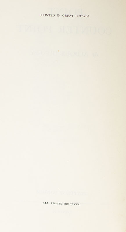 “Unmentioned, what is can become as though it were not”: First Edition of Aldous Huxley's Point Counter Point
