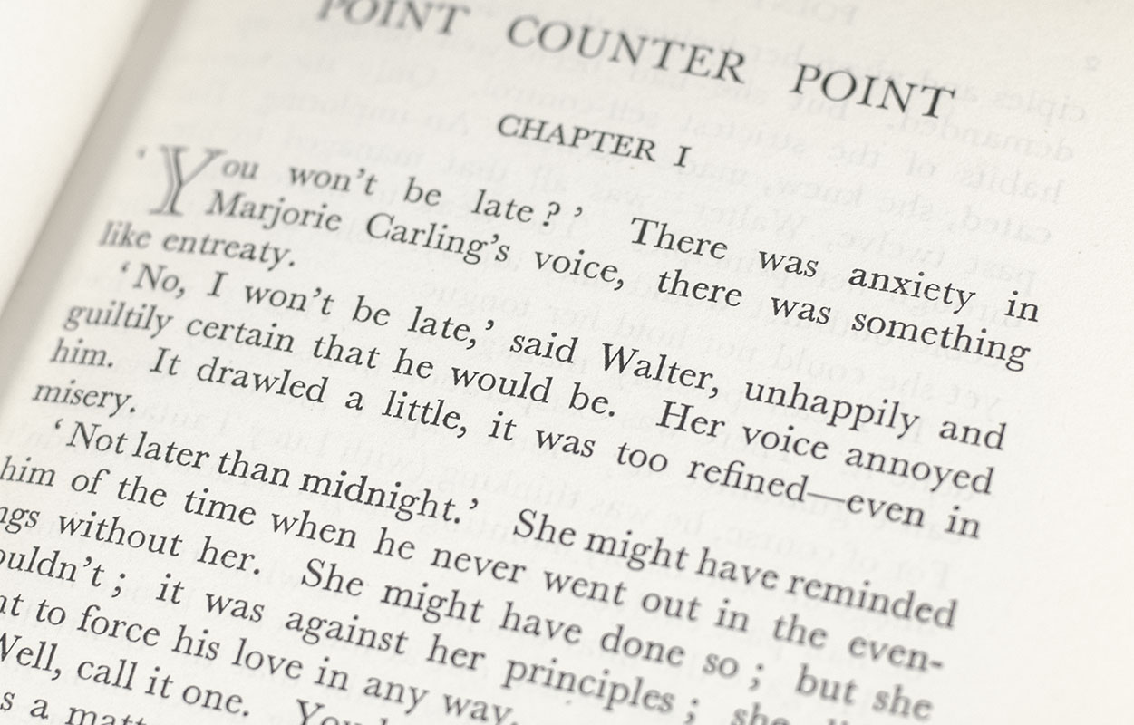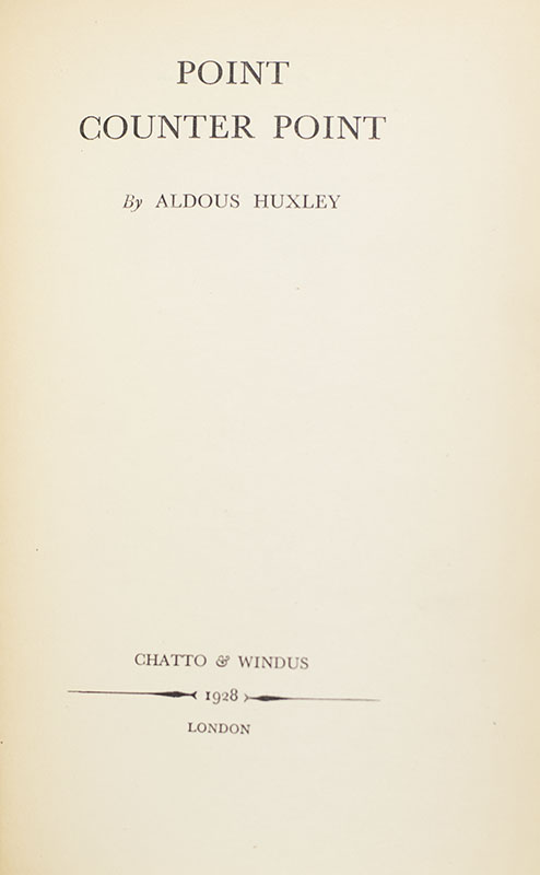 “Unmentioned, what is can become as though it were not”: First Edition of Aldous Huxley's Point Counter Point; Signed by Him
