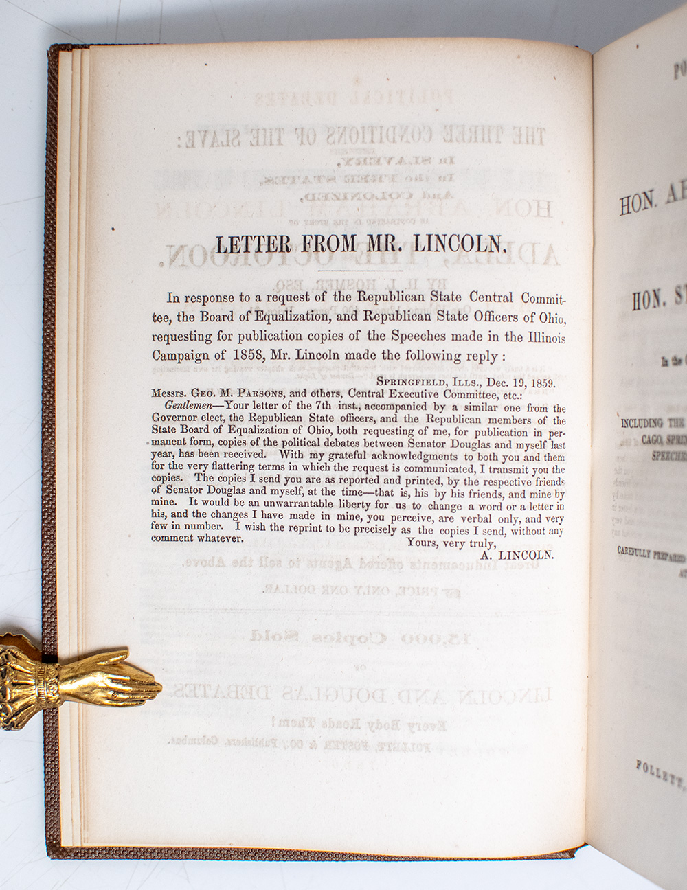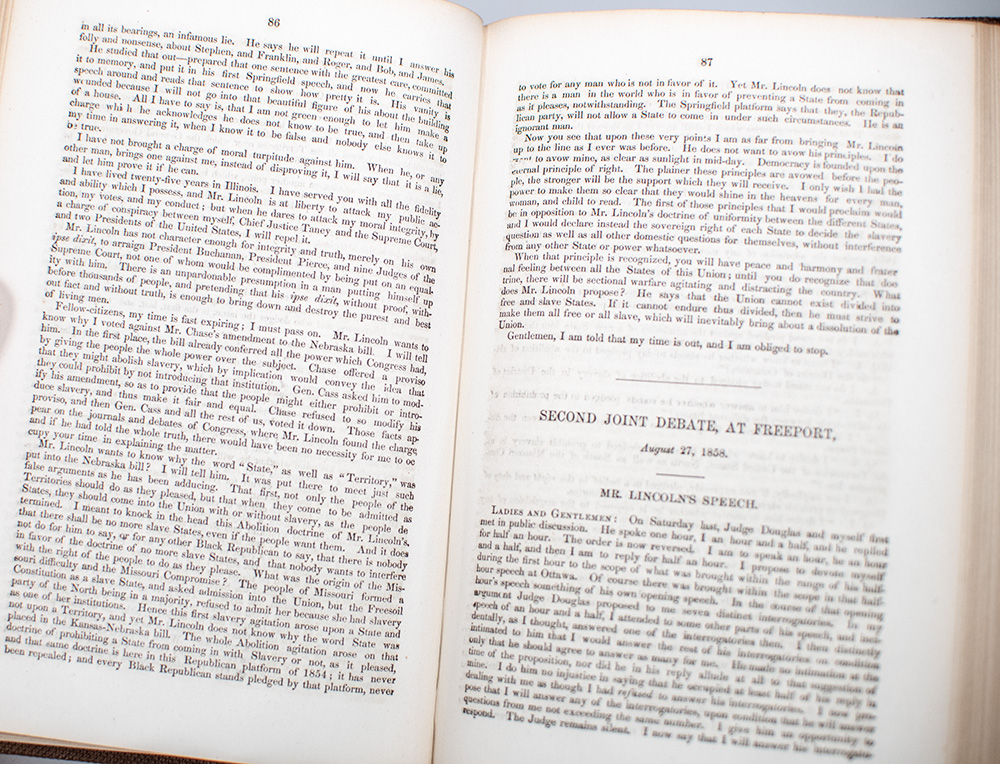 “THE MOST IMPORTANT SERIES OF AMERICAN POLITICAL DEBATES”: FIRST EDITION OF THE LINCOLN-DOUGLAS DEBATES; From the library of President Gerald Ford