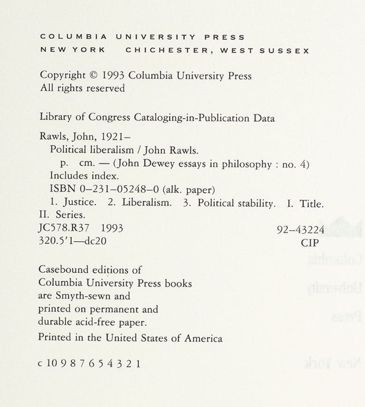 First edition of this work which continues and revises the idea of justice as fairness as presented in A Theory of Justice. Octavo, original boards. Signed by John Rawls on the front free endpaper. Fine in a fine dust jacket. Jacket design by Carin Goldberg. Rare and desirable signed.