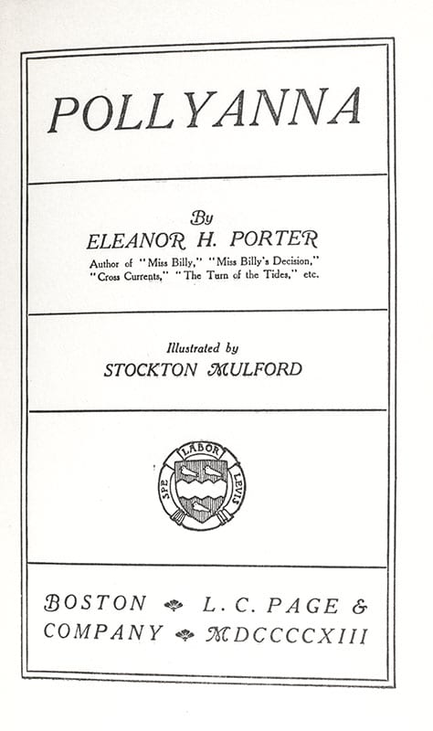 "When you look for the bad in mankind expecting to find it, you surely will": Eleanor H. Porter's Pollyanna; inscribed by her