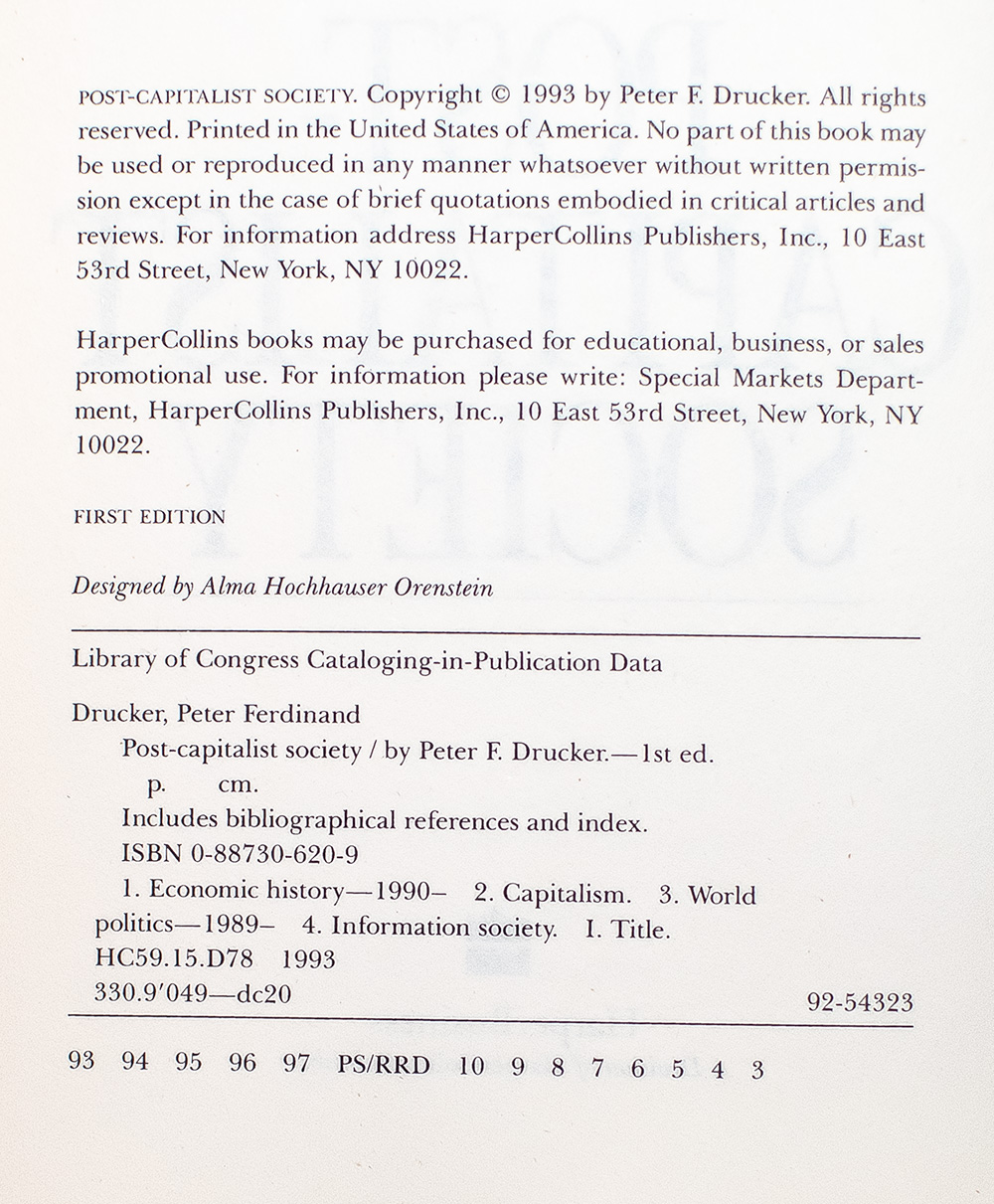 "What gets measured gets improved": First Edition of Post-Capitalist Society; Signed by Peter Drucker