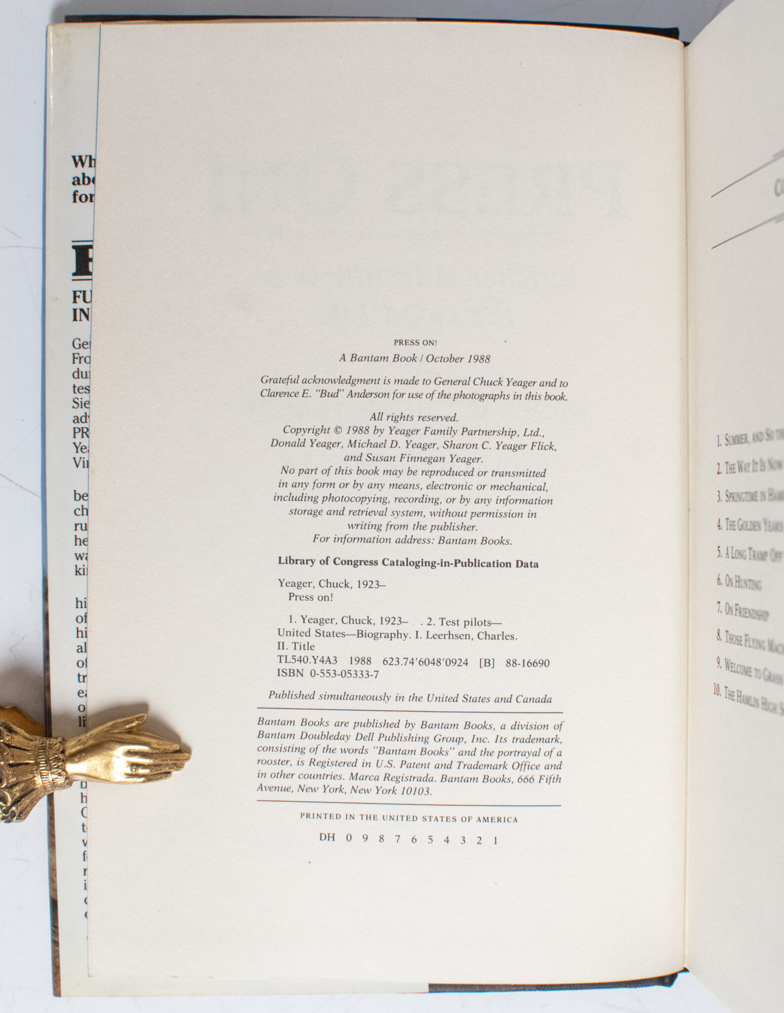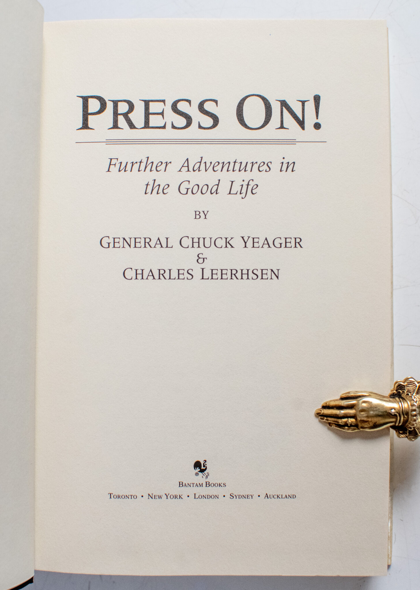 "When the going gets tough, just about all you can do is keep going forward, and press on": First edition of Press On! Further Adventures in the Good Life; Inscribed by General Chuck Yeager and signed by Bud Anderson to Governor Ed Hershler