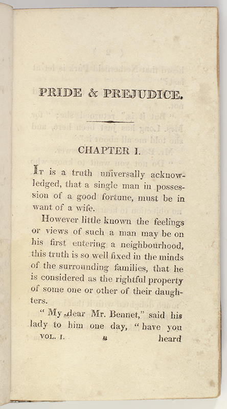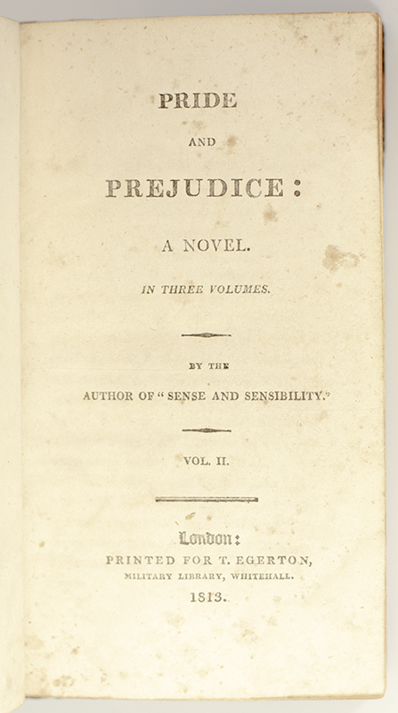 “A lady's imagination is very rapid; it jumps from admiration to love, from love to matrimony in a moment": Rare First Edition of Jane Austen's Pride and Prejudice
