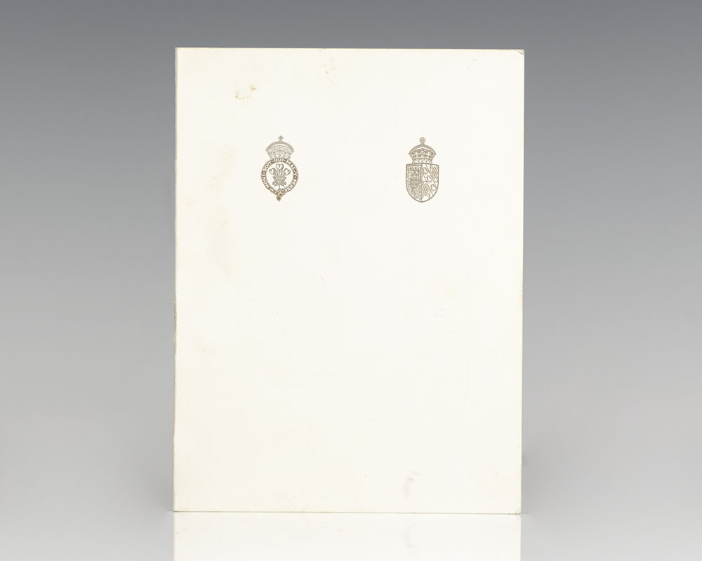 Royal Christmas card bearing two royal seals and an original color photograph of Diana, Princess of Wales, Prince Charles and the young Princes William and Harry. Inscribed by Prince Charles, "from Charles" signed by Princess Diana, "Diana." In near fine condition.