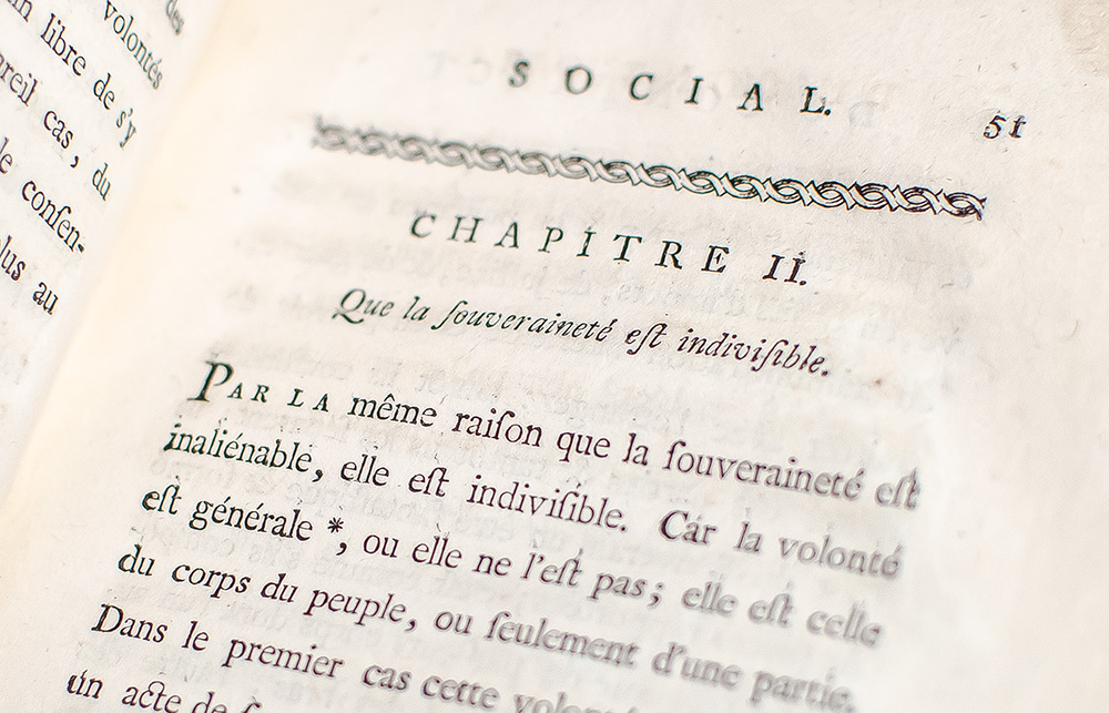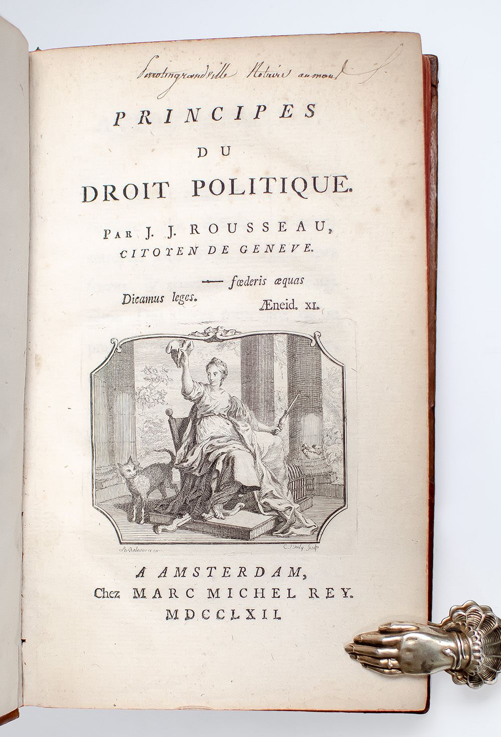 "Rousseau's greatest work... the precursor of the French revolution": Rare first edition of Jean-Jacques Rousseau's magnum opus Principes Du Droit Politique, or Treatise on the Social Compact