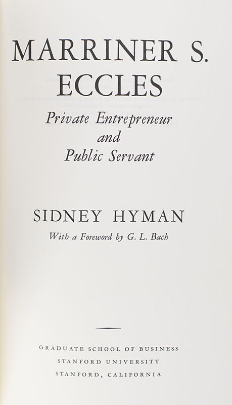 HYMAN, Sydney [Marriner S. Eccles].