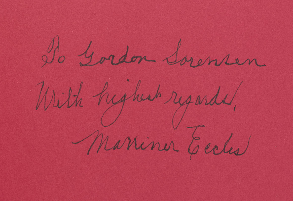 First Edition of Marriner S. Eccles: Private Entrepreneur; inscribed by Him